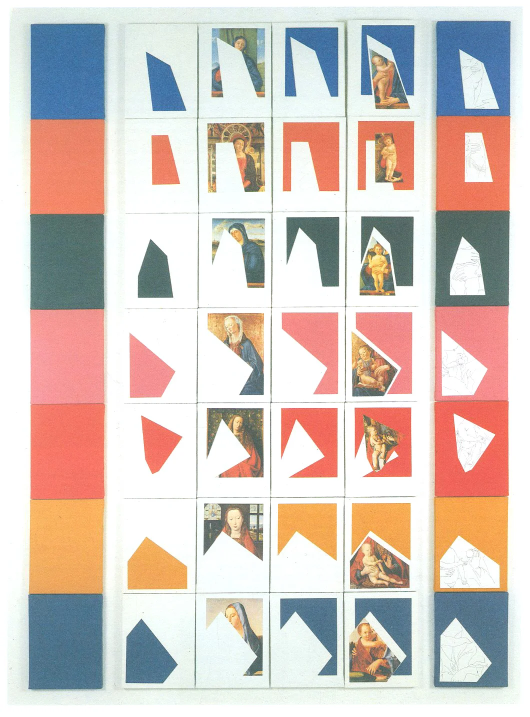 Le travail exposé lici, suite et continuation de travaux antérieurs 1, explore le sens et la signification de l’art et ses niveaux de perception. La restructuration du sens s’élabore à partir de la déconstruction de « tableaux » (de leur reproduction) utilisés comme matériau de base des œuvres présentées.